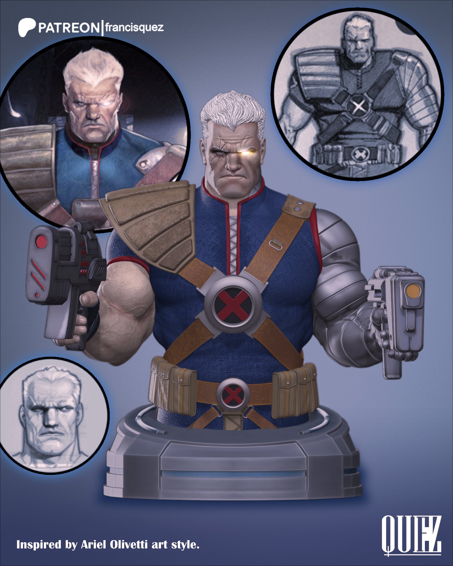 + + Cable Bust, Based on Ariel Olivetti art style.