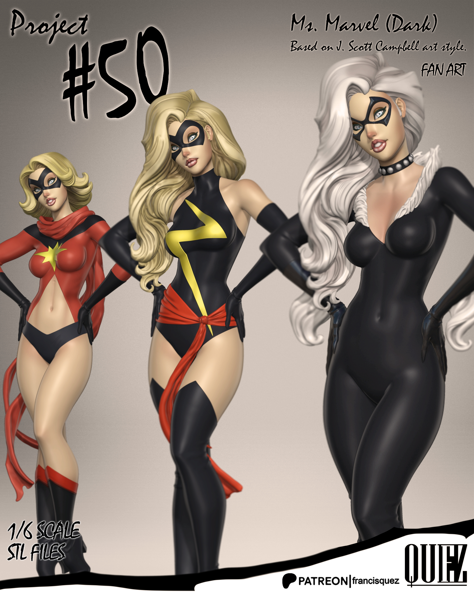 - Ms. Marvel, Black Suit - Alternate Character, based on J. Scott Campbell art style (Comic book cover artist).